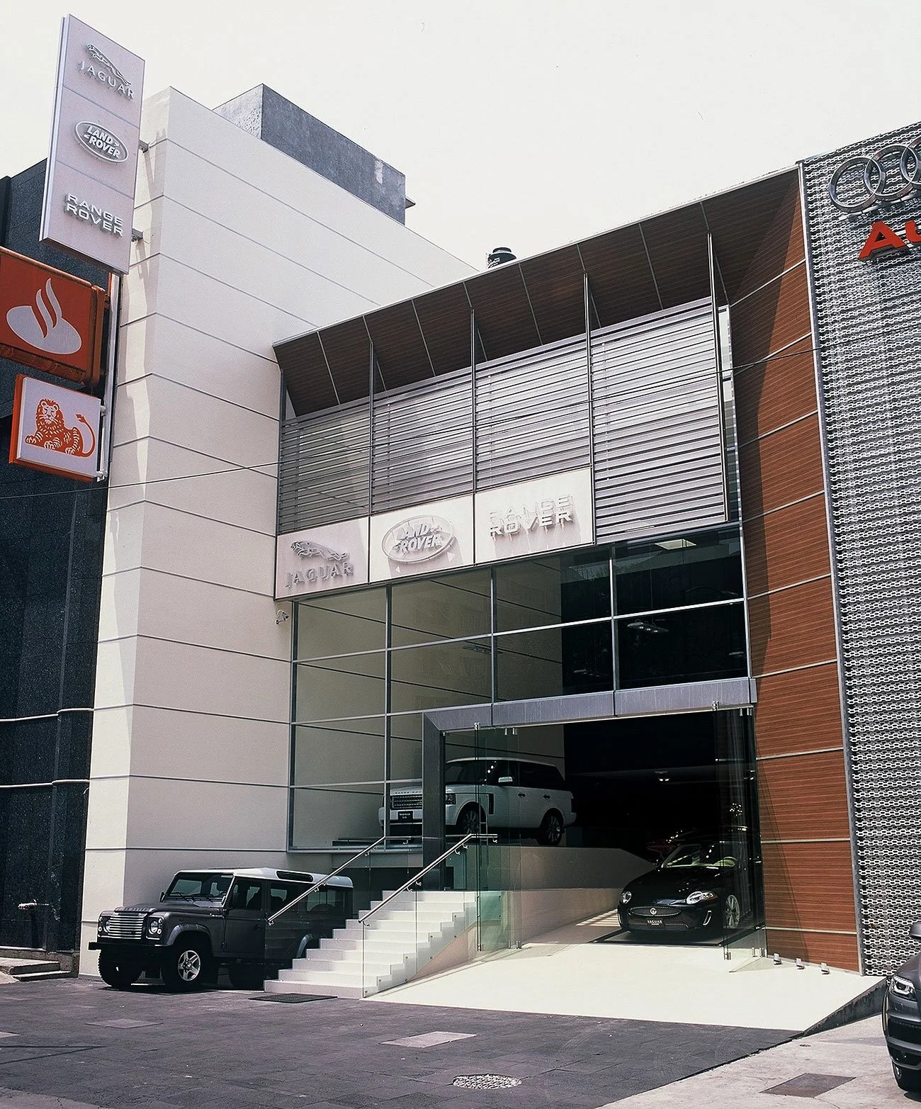 Las fachadas del edificio son el reflejo más fiel de la disposición interior de las viviendas. Así, lafachada principal (nordeste) ofrece un gran paño vidriado a la ciudad, de cuyas vistas disfrutansala-comedor yrecámara principal. La fachada de acceso (suroeste), por su parte, ofrece unasaberturas mucho menores que favorecen la privacidad de los espacios interiores.